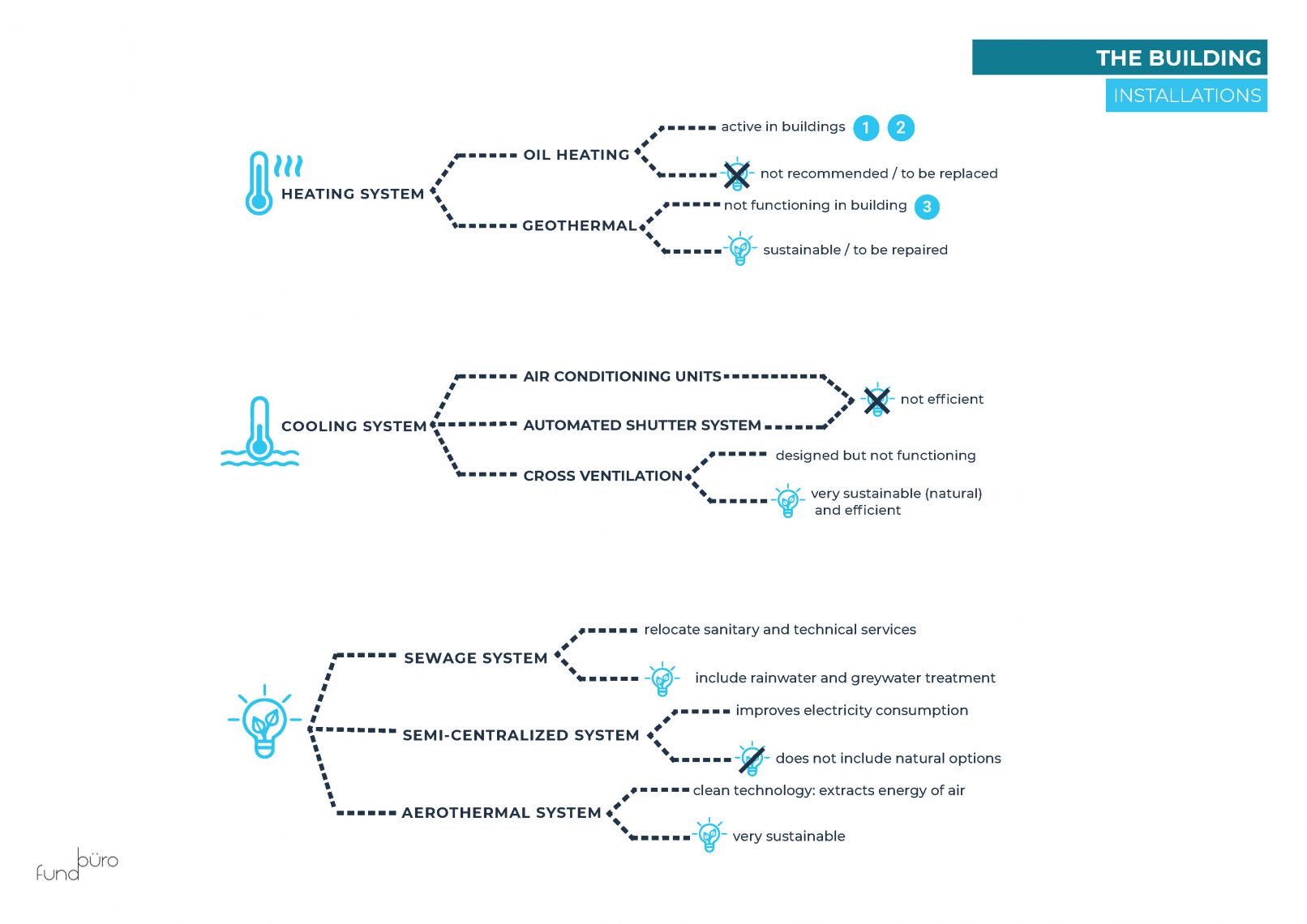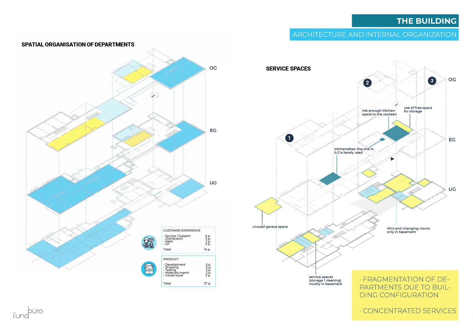 In this first part, prior to the renovation of the offices, the company, the building, and the external environment are analyzed. This allows for establishing a specific development strategy for the company in different phases. The result is a guideline that serves the company to determine the steps to follow, considering priorities, time and cost.