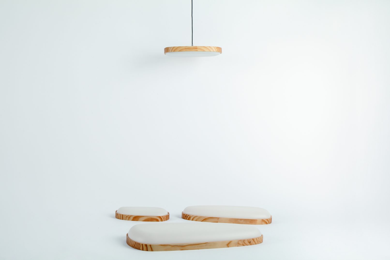 While in the sea, observing the rounded rocks from the beach a clear idea became into a functional shape. Form is a collection of lights composed of three different wall modules and hanging lamp. The main concept is to allow users to create interesting mosaics by using the lights in several positions and dimensions. The modules are made of solid pine and thermoformed polystyrene, with a well-thought LED system that allows emitting a beam of warm and cozy light.