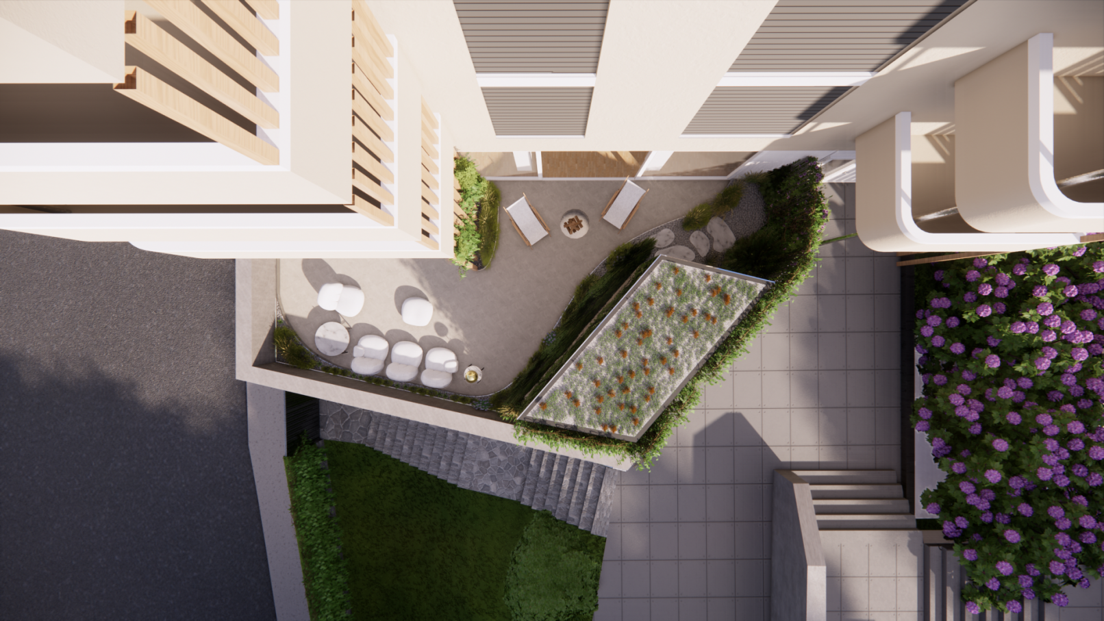 The project consists of a captivating outdoor sauna in Stuttgart, designed as a prism with a mirrored cover that camouflages it, turning it into a hidden gem in the city. The pavilion is located in a courtyard that is accessed through a path of stones surrounded by lush vegetation with an outdoor shower.