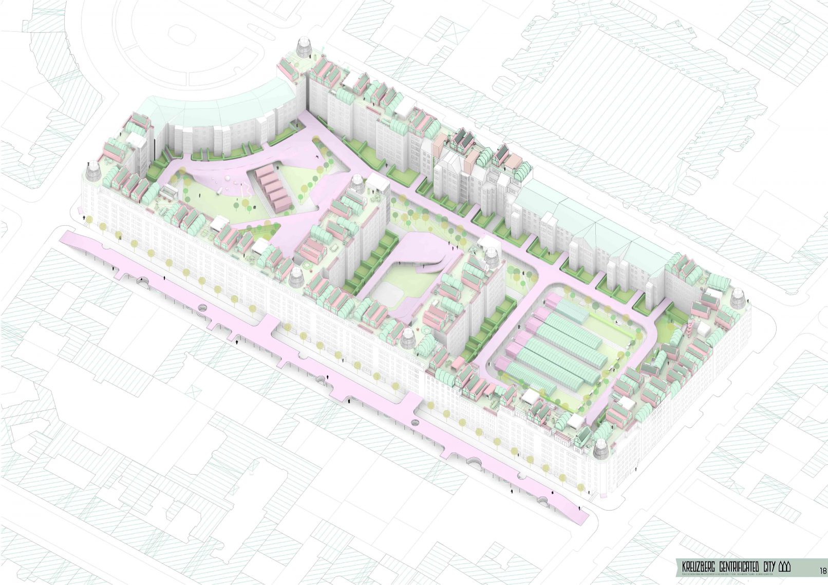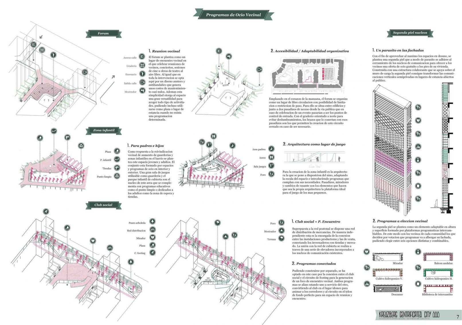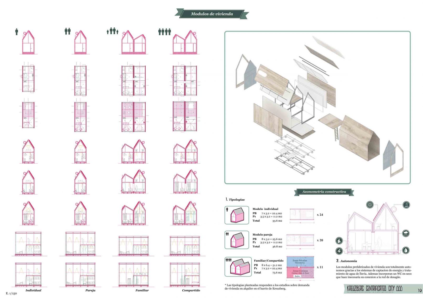 This research project proposes an urban regeneration plan to redensify and incorporate community programs in order to palliate the problems caused by gentrification. It will create a net of productive blocks to give a new income to owners and inhabitants, spreading the activity around the neighborhoods and balancing the rent prize between different areas. The new system consists of a number of prefabricated living modules and industrialized construction items which occupy the empty spaces of the existing buildings. Thereby impact, deadlines, and cost are reduced, and viability and sustainability are maximized in this urban operation.