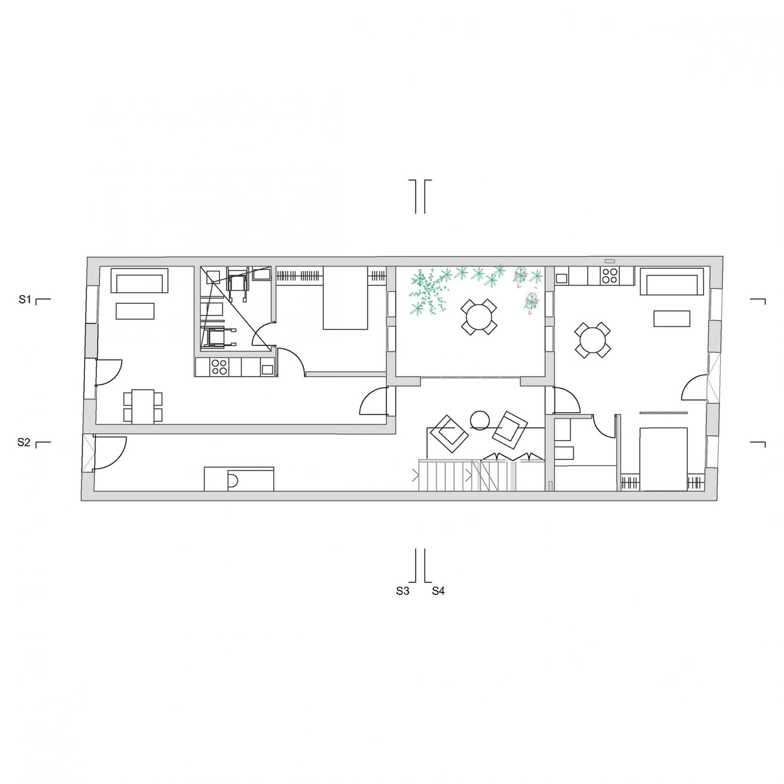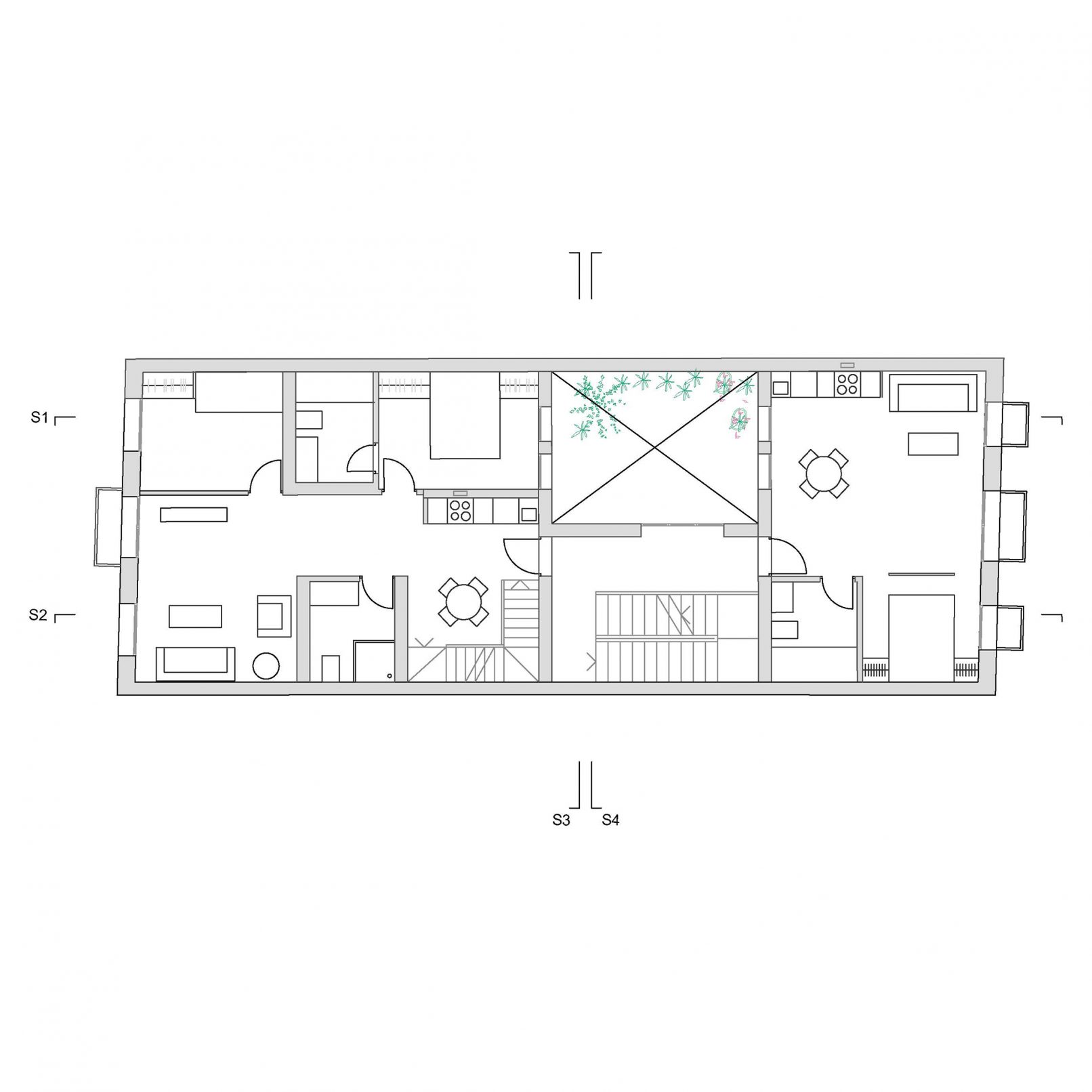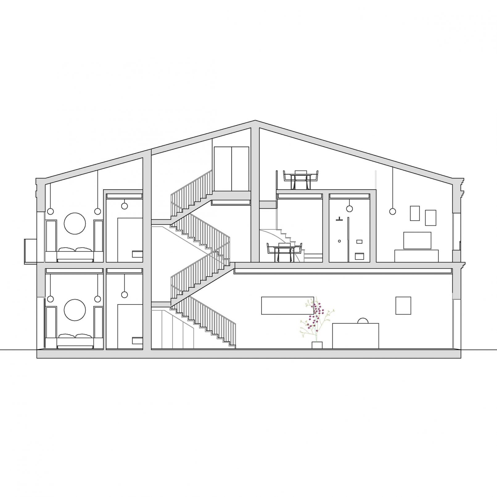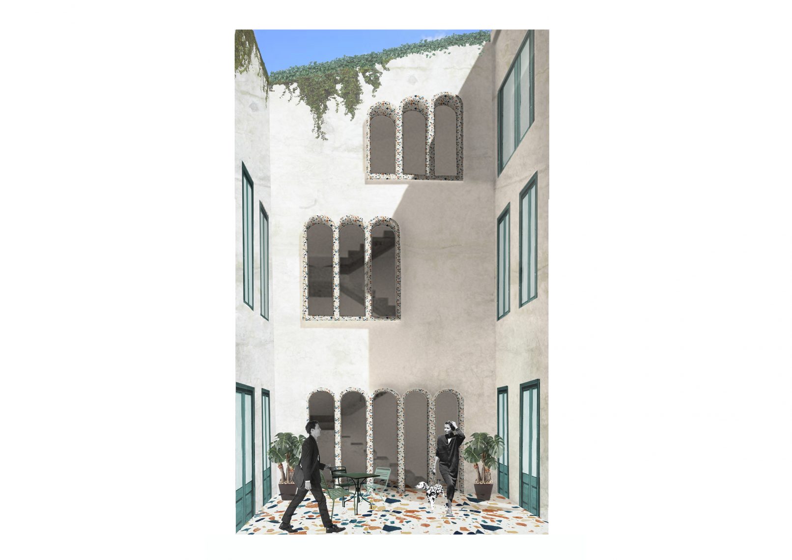 In order to connect the two volumes, and taking as a reference the porticoed atriums of the city’s Gothic architecture, we propose a new arched staircase core with a modern twist that includes a meeting area for the new inhabitants. In addition, a tile mural is added to the back façade which reinterprets one of the most famous works of the painter Sorolla, one of the city’s best-known artists. Transforming the building into an attraction itself.