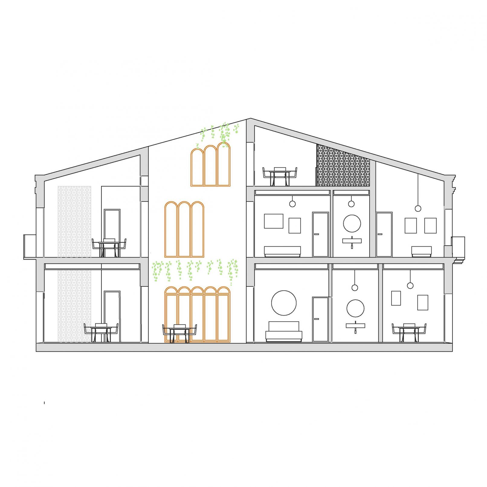 The building part of a new boutique hotel composed of 5 buildings in the city of Valencia, was illegally demolished by its former owners. Because it is a protected building, the authorities forced our client to rebuild it, so the main objective of the project was to be as faithful as possible to the original design.