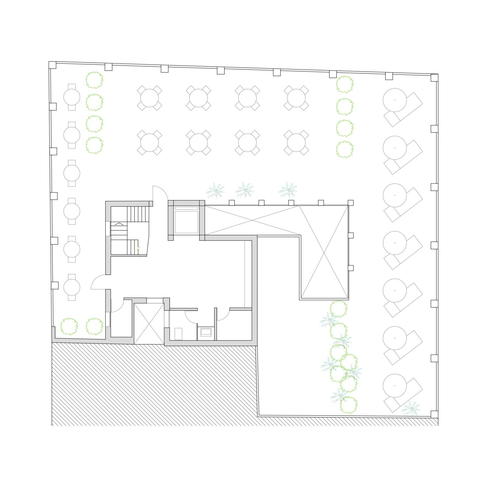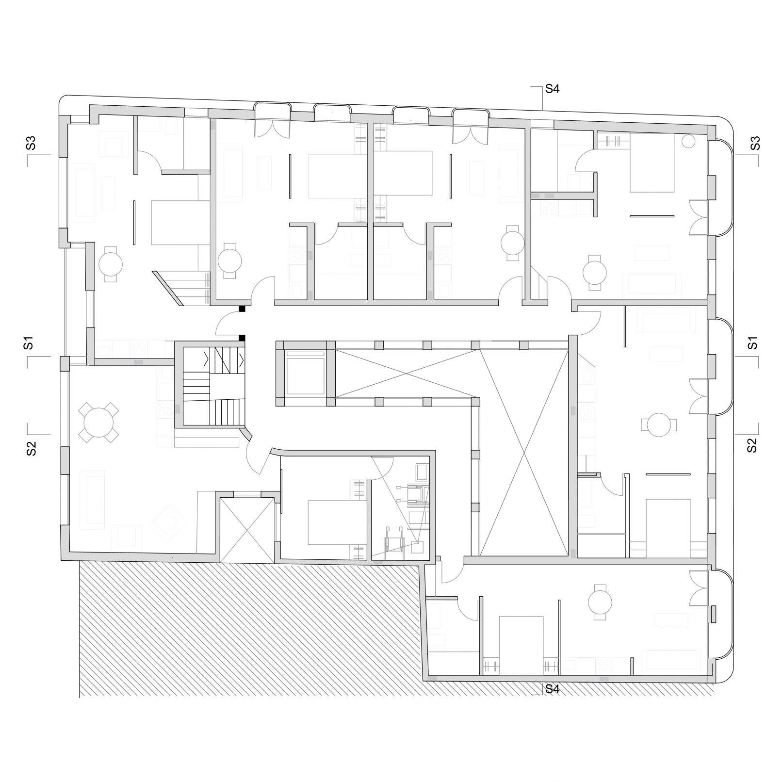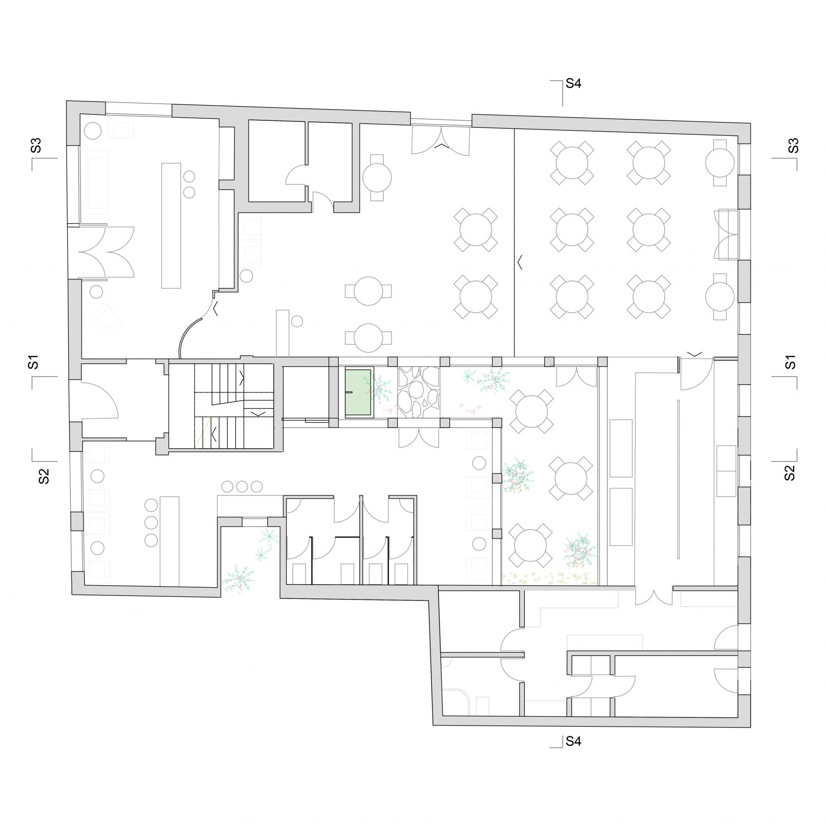 The existing building was the result of various extensions over the past century, which mixed classical styles with modernism or the 70s creative solutions. In this great chaos, the front façade, the staircase, and the old bakery on the ground floor stand out. And therefore these are the elements that have been preserved in the new extension, giving the building its character as a reminder of precious times.