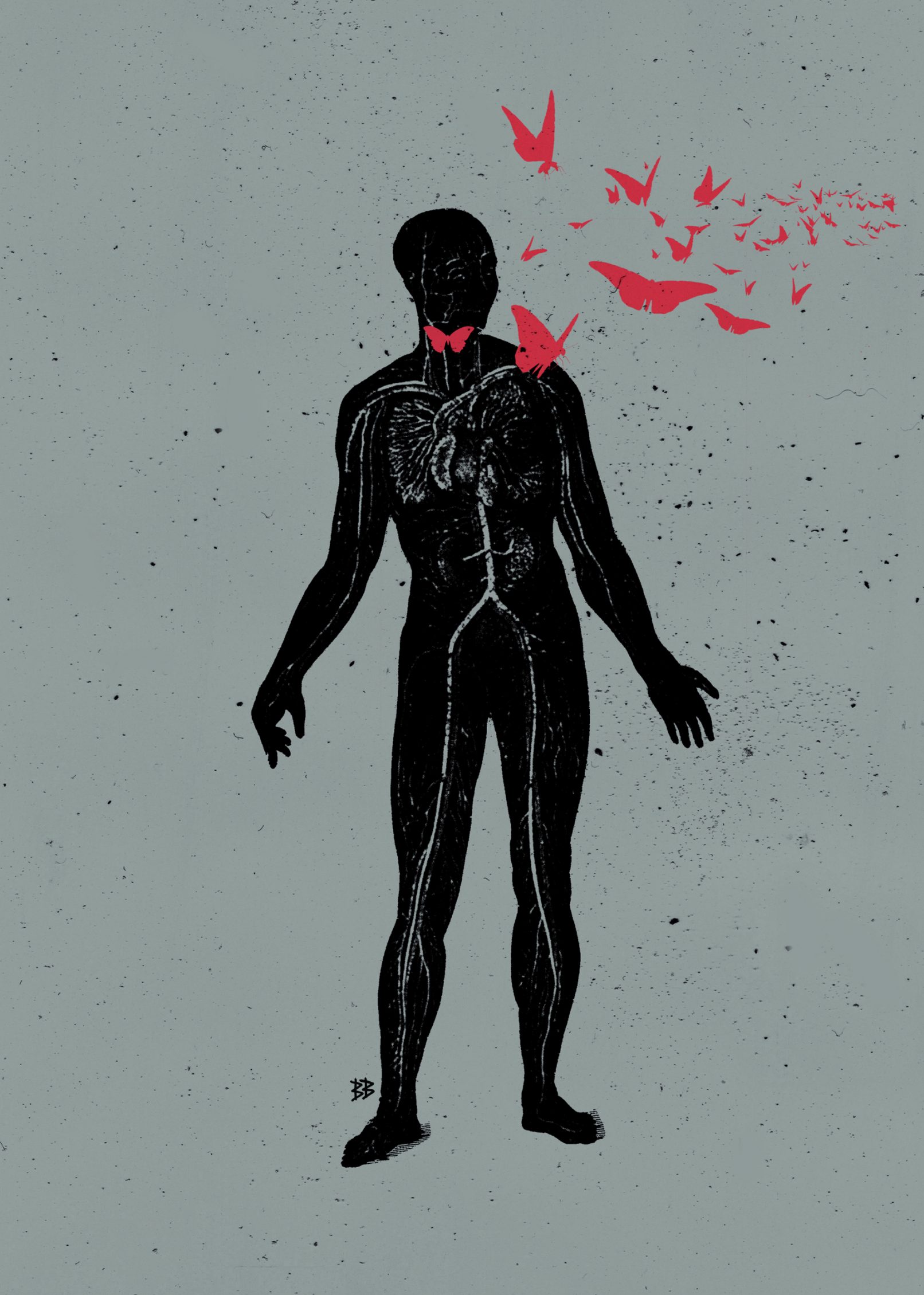 This poster was for an Endocrinology Congress specialized in surgery of the thyroid gland. This gland is formed by two butterfly-shaped lobes on both sides of the trachea, both lobes joined by the neck. Its butterfly shape was the protagonist of the design.